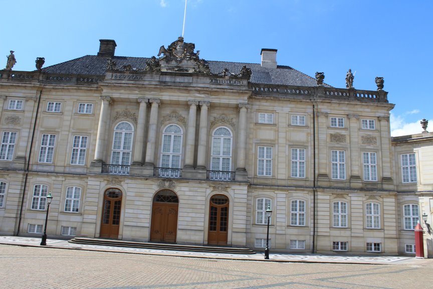 腓特烈教堂是丹麦最大的铜绿色圆顶教堂,与阿美琳堡王宫隔路相望。由于大量使用了丹麦和挪威出产的大理石,因此当地人称之为“大理石教堂”(Marble Church)。大理石教堂始建于1779年,但由于资金的问题,直到1894年才得以竣工和开放。教堂内部直径为31米的巨大圆顶是由12根圆柱支撑的,圆顶上绘有耶稣的12个使徒的画像,整个内部装饰与绘画庄重、大气、威严,神圣。教堂外部高大的人物雕塑,使得教堂更加具有历史的沧桑感。