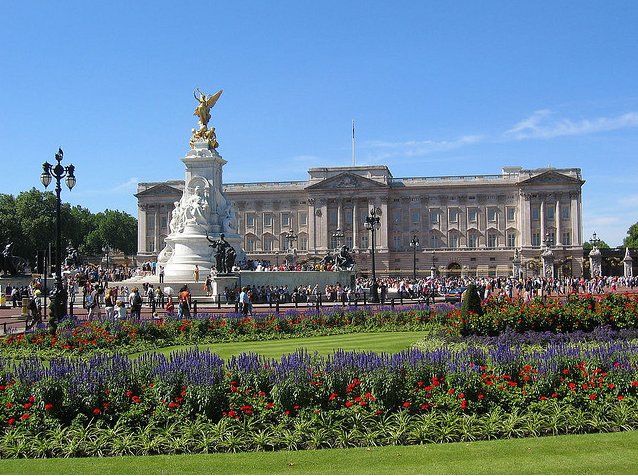 白金汉宫(Buckingham Palace)是英国的王宫,是女王的办公地点及其在伦敦的居住场所,也是王室行政总部之所在,是当今世界上少数仍在使用的皇家宫殿之一。同时也是观看卫队换岗的最好地点。 宫殿建造在威斯敏斯特城内,伦敦詹姆士公园(St. James’ Park)的西边。1703年为白金汉公爵所建,由此得名,最早称白金汉屋,意思是“他人的家”。 宫里的国事厅和舞厅富丽堂皇、装饰奢华,并有很多珍贵收藏展出,但只在每年夏季女王出访苏格兰时开放19间国事厅供游客参观。夏季每日和冬季隔日,白金汉宫上午11:00会举行壮观气派的皇家卫队换岗仪式,游人可以提前到此占据有利位置方便观赏。 女王在宫中的时候,宫殿外面的升有王室旗帜。